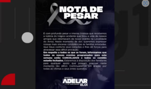 O candidato a prefeito da cidade, Adelar Eloi, publicou uma nota de pesar nas redes sociais. Ele não especificou quais vítimas estavam em seu evento político na zona rural, mas afirmou que o acidente “tirou a vida de amigos”.