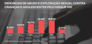 As denúncias de abuso e exploração sexual contra crianças e adolescentes aumentaram 195% nos últimos quatro anos. Segundo o Ministério dos Direitos Humanos, o número de casos recebidos pelo Disque 100 saltou de 6.380, em 2020, para 18.826 em 2024 (veja mais abaixo).