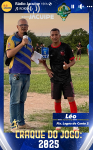 No confronto marcado pelo empate entre o Flamengo da Lagoa do Canto II e Bom Jardim, a equipe de esportes da Rádio Jacuípe elegeu como o craque da partida, o atleta Léo do Flamengo da Lagoa do Canto II.