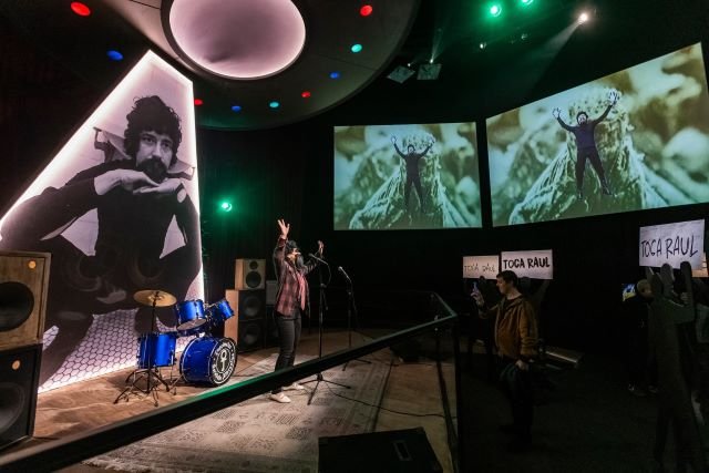 Em uma atração paga à parte (R$10) do ingresso para a exposição (R$ 30), até três pessoas poderão cantar, em um palco sob um disco voador, músicas do homenageado. No final, um QR code disponibiliza o vídeo da apresentação. Basta postar e espalhar ainda mais Raul.