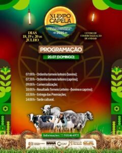 Em sua décima primeira edição, a ExpoCapela 2025 promete movimentar o município com uma programação intensa que inclui o Torneio Leiteiro Bovino e Caprino, julgamento de raças, além de atividades culturais, momentos de lazer e muito entretenimento. Este ano, serão distribuídos R$ 25 mil em premiações, fortalecendo ainda mais o incentivo aos produtores locais e à valorização da agricultura familiar e da economia solidária.
