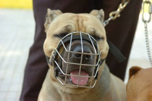 “Os cães de raças notoriamente violentas e perigosas só podem ser levados aos parques, praças ou vias públicas, com a utilização de coleira, guia curta de condução e focinheira”, diz.