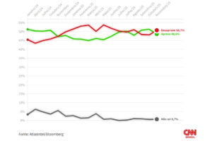 A aprovação, por sua vez, é de 48,6%. No último mês era de 51,2%.