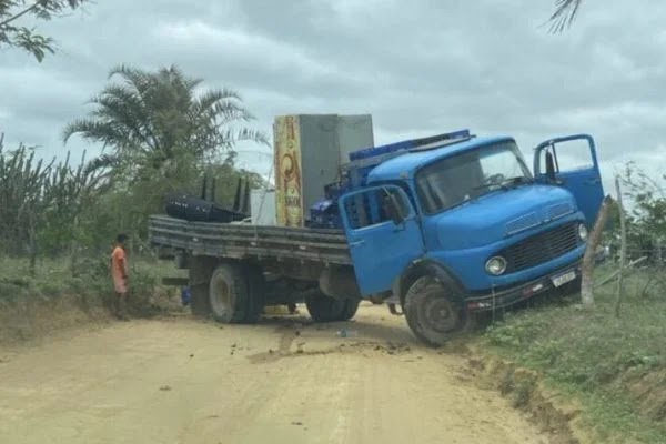 Na manhã desta quarta-feira (10), um caminhão Mercedes 11/13 de uma distribuidora de bebidas de São José do Jacuípe se envolveu em um acidente na estrada vicinal que liga o povoado de Alto do Capim, em Quixabeira, ao povoado do Maracujá, em Serrolândia.