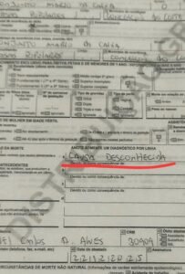 Segundo os familiares, a hipótese levantada inicialmente foi descartada. Uma cópia da declaração de óbito enviada à reportagem aponta que a causa da morte está registrada como “desconhecida”, sem confirmação de intoxicação ou uso de substâncias entorpecentes.