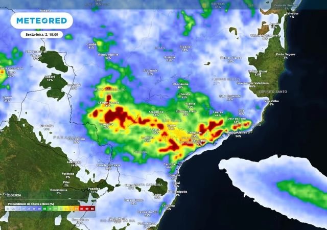Em outras palavras, o sistema será capaz de quebrar o bloqueio atmosférico e avançar sobre estados que estão, neste momento, sendo atingidos por uma onda de calor significativa – região essa que envolve estados como SP, RJ e parte de outros estados, incluindo MG, ES, GO e MS.