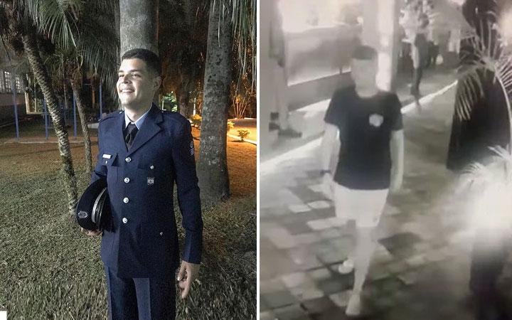 Imagens de câmeras de segurança de um estabelecimento comercial em Arraial D’Ajuda, distrito de Porto Seguro, registraram o militar ainda na noite de domingo, por volta das 23h. Ele aparece de camisa preta e é registrado saindo sozinho do local.
