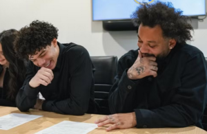 O atacante Enzo Alves, filho do ex-lateral Marcelo, assinou nesta segunda-feira seu primeiro contrato profissional com o Real Madrid. O jogador de 16 anos registrou em suas redes sociais o momento ao lado de sua família, no Centro de Treinamento do clube, em Valdebebas, em Madri. Enzo atua nas categorias de base do time espanhol e integra as seleções de base da Espanha.
