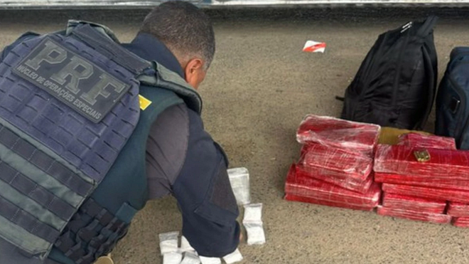 Cerca de 24 quilos de drogas foram apreendidos durante uma fiscalização realizada em um ônibus de turismo na BR-116, em Feira de Santana, nesta quarta-feira (4). As substâncias foram localizadas em uma bagagem de mão e em uma mala no compartimento de bagagens. O veículo saiu de São Paulo com destino a cidade de Araci, no nordeste da Bahia.