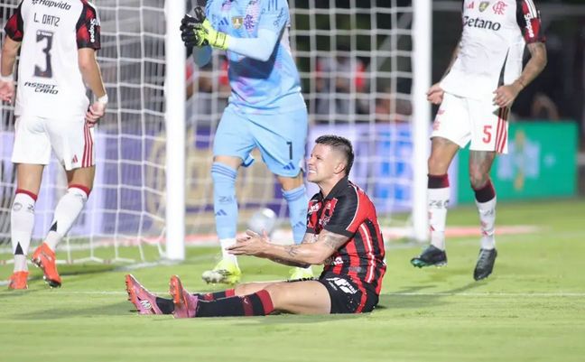 O primeiro chute do Flamengo mudou o placar no Barradão. Aos 14 minutos, Cebolinha trouxe para o meio e passou para Erick Pulgar. O volante ajeitou e mandou uma bomba no ângulo de Gabriel. 1 a 0 para os visitantes.