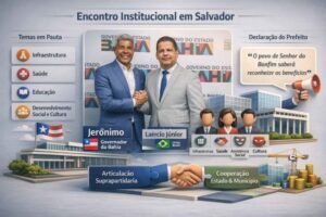 Em conversa com o Informe Baiano, o prefeito esclareceu que a foto divulgada pelo Governo do Estado não representa articulação política e teve caráter estritamente institucional, voltada à discussão de pautas administrativas do município.
