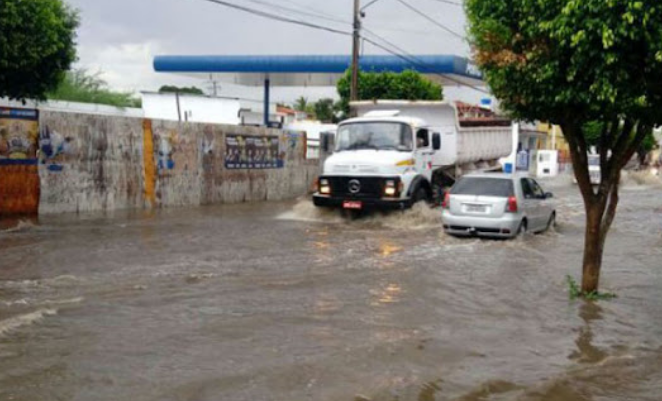A chuva intensa começou no fim da tarde e seguiu durante a noite, acompanhada por trovões, raios e ventos fortes. Diversas ruas ficaram parcialmente alagadas, entre elas a Avenida Eliel Martins, no centro da cidade.