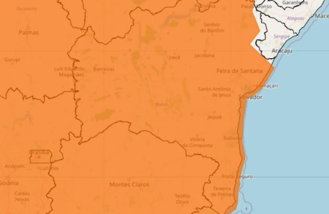 Entre as cidades incluídas no alerta estão Salvador, Feira de Santana, Vitória da Conquista, Lauro de Freitas, Camaçari, Ilhéus, Itabuna, Barreiras, Juazeiro e Porto Seguro, além de municípios do interior e da Região Metropolitana.