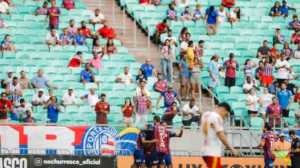 Em jogo marcado por protestos dos torcedores e uma tensão inesperada, o Bahia venceu o Juazeirense por 4 a 2, na tarde deste sábado, e se classificou para a quarta final consecutiva de Campeonato Baiano. Na Casa de Apostas Arena Fonte Nova, o Tricolor chegou a fazer 3 a 0 com Willian José, Pulga e Kike Olivera, viu o rival descontar com Bino e Vitinho, mas Sanabria fez o gol da tranquilidade nos minutos finais.