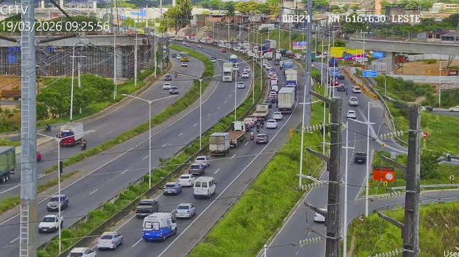 Segundo a PRF, não há caminhões na via. A manifestação toma as duas faixas, com uma faixa livre, sentido via expressa e logo após indo para o Centro Administrativo da Bahia, dentro da cidade.