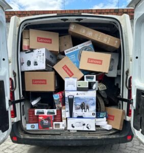 No local, foram apreendidos aparelhos celulares, notebooks, eletrodomésticos, eletroeletrônicos, pneus automotivos e outros produtos, todos relacionados ao esquema investigado. Também foram encontrados um revólver calibre .32, um carregador de pistola calibre 9 mm, documentos e veículos com sinais de adulteração, entre eles três motocicletas e um automóvel.