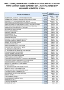 O Conselho Regional dos Despachantes Documentalistas da Bahia (CRDD-BA) formalizou por meio de uma resolução diretrizes que estabelecem a tabela de referência de honorários para os serviços prestados pela categoria no estado. A norma define valores para procedimentos relacionados ao registro, alteração e licenciamento de veículos junto ao Departamento Estadual de Trânsito (Detran-BA), que também oficializou a recepção do regramento em portaria publicada na última semana.
