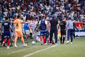 Já o técnico Rogério Ceni foi julgado com base no artigo 258 do CBJD, que aborda condutas contrárias à disciplina ou à ética desportiva. O treinador foi punido com uma partida de suspensão, sem conversão em advertência.