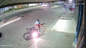De acordo com a Polícia Civil, o jovem conduzia a motocicleta e realizava manobras perigosas, conhecidas como “grau”, quando atingiu a vítima. Imagens de câmeras de segurança registraram o momento do acidente: Gleice aparece correndo pela via, quando o motociclista surge empinando o veículo e provoca o impacto.