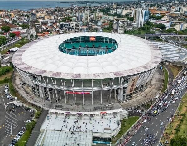 Com capacidade para 50 mil pessoas, a arena baiana destaca-se pela excelente ventilação natural proporcionada por seu desenho em ferradura.