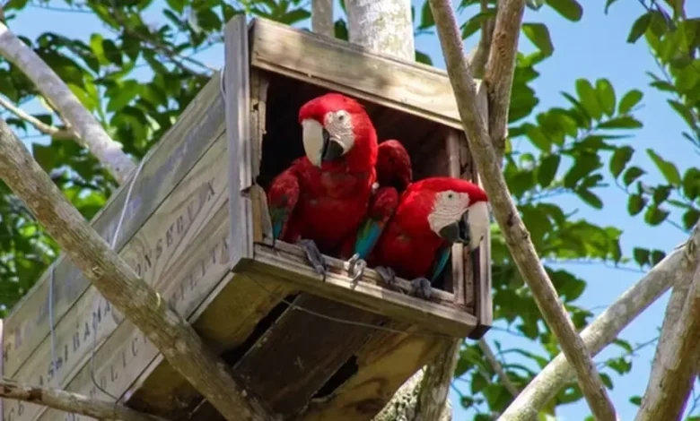 A presença da arara-vermelha-grande vai além da beleza descrita por Pero Vaz de Caminha em 1500. A ave atua como uma “jardineira da floresta”: por seu porte físico, ela consegue carregar sementes grandes por longas distâncias, sendo fundamental para a regeneração da Mata Atlântica.